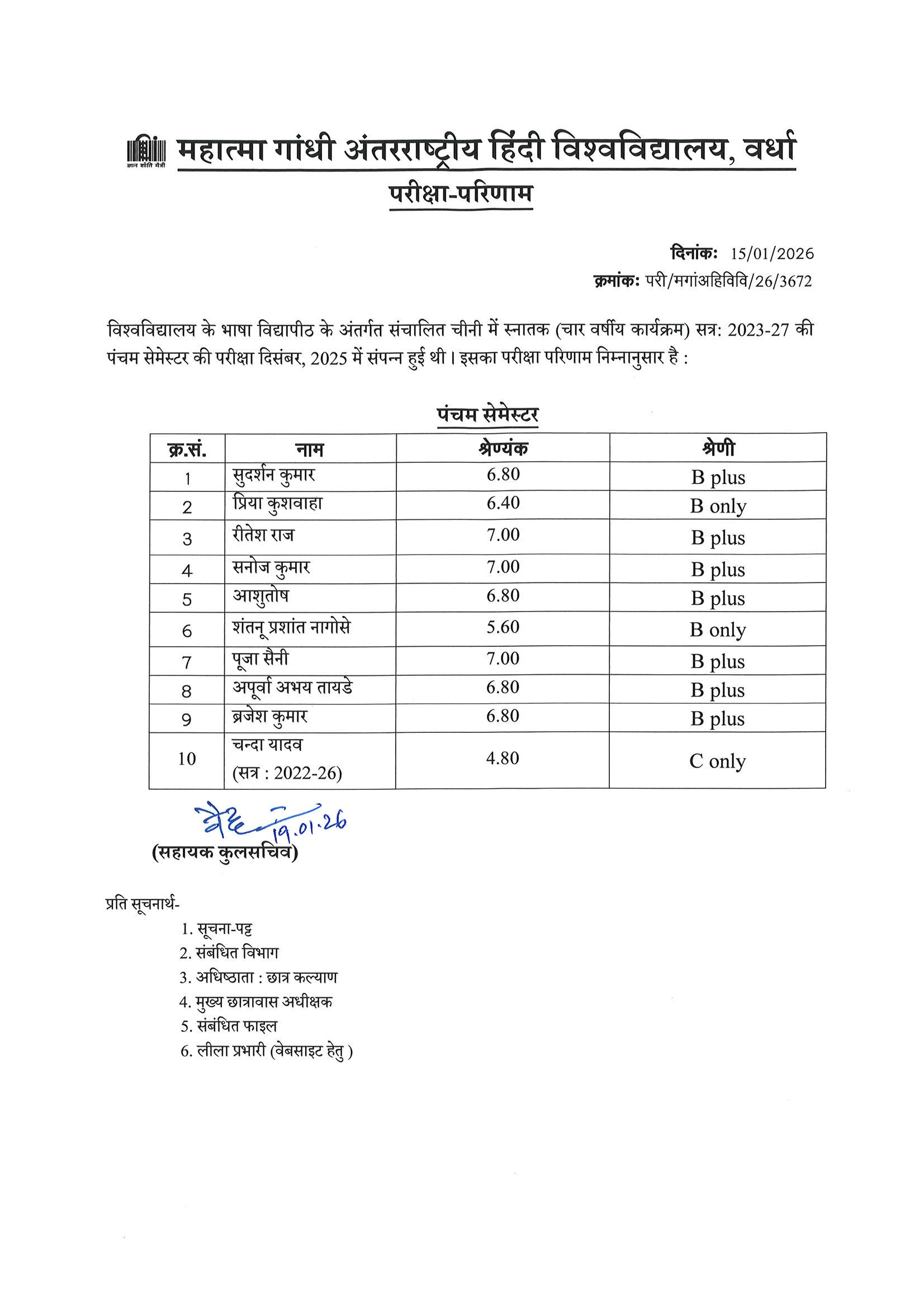 एम.ए. मराठी (सत्र: 2025-27) प्रथम सेमेस्टर परीक्षा परिणाम