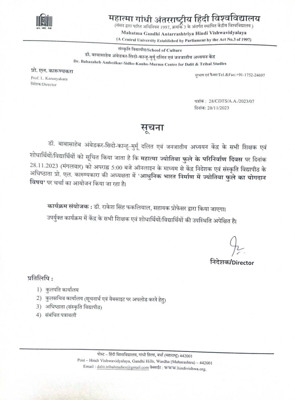 विश्वविद्यालय में हिंदी शिक्षण अधिगम केंद्र की स्थापना हिंदी को अधिकाधिक उपयोगी एवं प्रासंगिक बनाने और उसके संवर्धन व विकास हेतु विविध आयामी कार्यक्रमों तथा उपक्रमों को संचालित करने के लिए की गई है। इसका उद्देश्य राष्ट्रीय भाषा के साथ ही अंतरराष्ट्रीय भाषा के रूप में हिंदी की भूमिका को प्रकाशित करने एवं प्रवासी भारतीयों के बीच अभिव्यक्ति के माध्यम के रूप में हिंदी को विकसित करना भी है। संसार के प्रत्येक भू-भाग में रहने वाले भारतवंशी अपनी साझी विरासत की भाषा के रूप में हिंदी के महत्व को स्वीकार करते हुए उसे उपयुक्त एवं प्रासंगिक बनाए रखने के लिए कृतसंकल्प हो सकें, केंद्र इस दिशा में भी सार्थक प्रयास हेतु संकल्पबद्ध है।